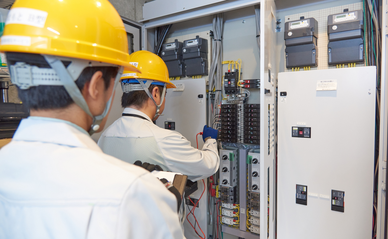 お客様の事業所に直接常勤勤務する形態の他、再生可能エネルギーの発電所や蓄電所などでは近隣に設置した事務所で勤務する形態も認められています。保安管理に伴う点検業務の他、各種アドバイス、立会、書類作成の補助や安全審査対応まで手厚くサポートしております。
