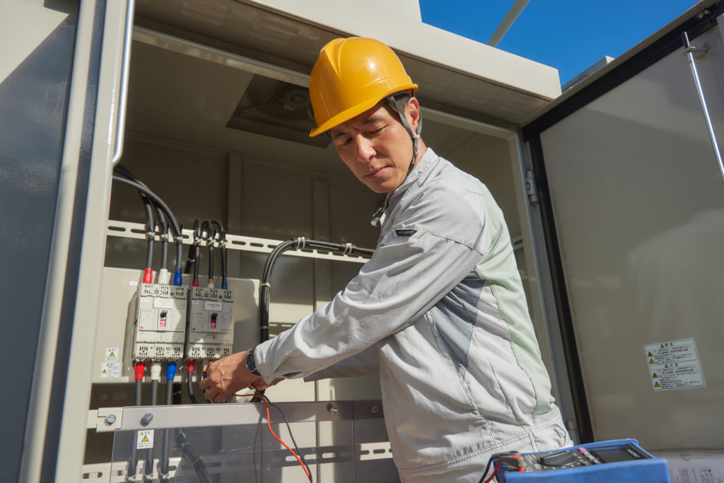 具体的には、外部との調整役として各担当者の定期点検や年に1回の停電点検の段取りを組んだりするほか、定期点検にも同行してサポートを行います。