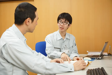 仕事の内容としては、先輩の点検に同行するのと、社内でのサポート業務があり、割合としては半々くらいです。