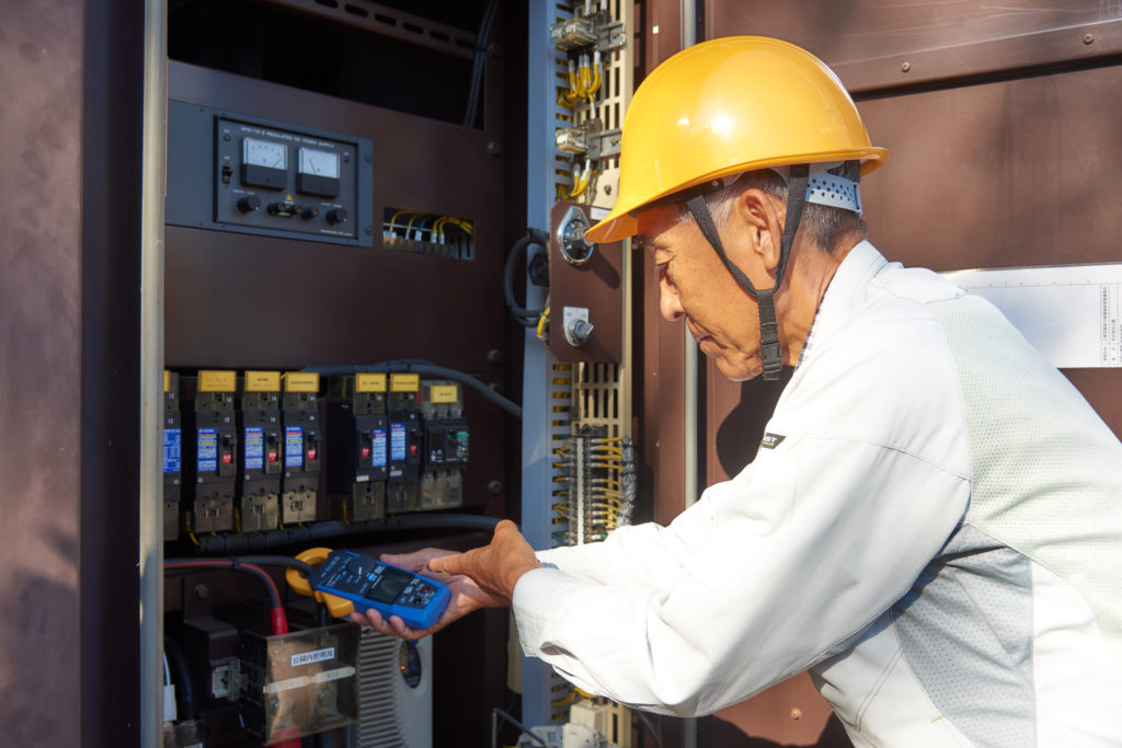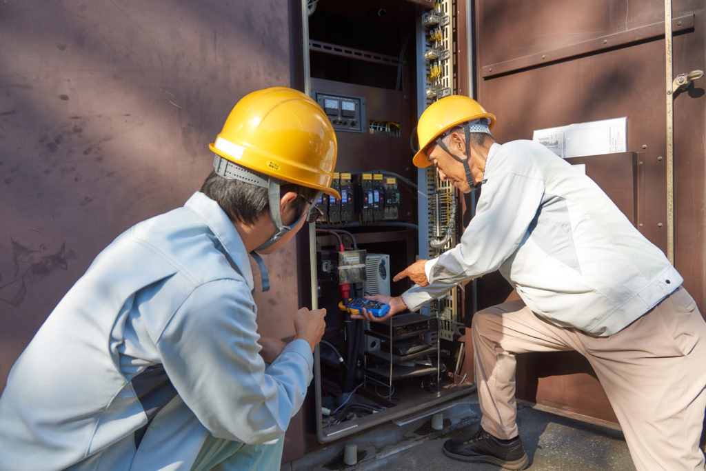 トラブルの原因が受配電設備に関わるものであれば、現場に行って対応します。そのほかに月次点検が月1回、年次点検が3年に1度、その後も精密点検が6年周期であり、発電所で作業をします。